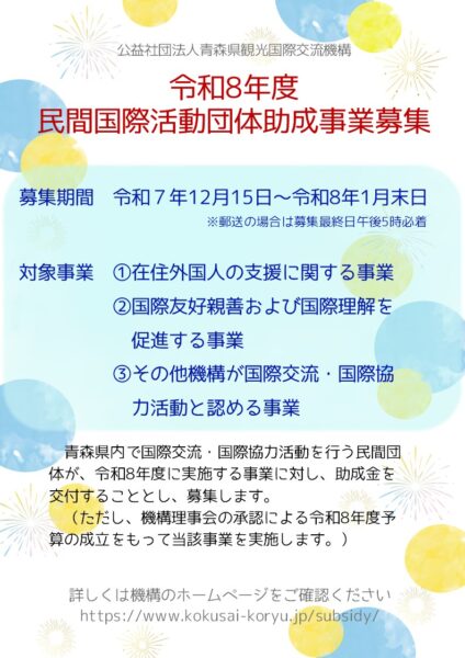 令和8年度民間国際活動団体助成事業募集案内(PDF)(147KB)
